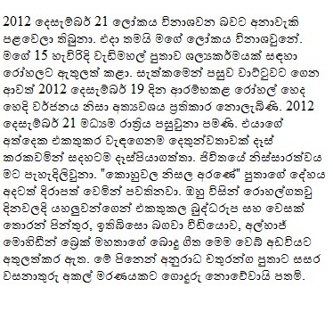 Welcome to buddhistorg.net. This site provides resources about the Teachings of the Buddha (the Dhamma), by a variety of famous teachers, both in Sinhala and English. If you have any suggestions for any improvements please let us know. We are also happy to answer any questions regarding technical difficulties.If you find this web-site of value please think about making an offering to help support it and bring the Dharma to the Internet and to people whom would otherwise not have the Dharma available to them. Give a gift with "PayPal."